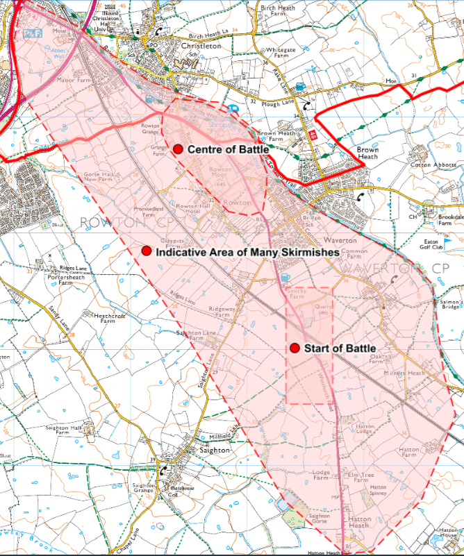 ROWTON PC BATTLETFIELD UPDATEv2Download Battletfield location – Centre and wider skirmish areaDownload Battlefield location – Google earthDownload Battlefield location – OSDownload English Heritage FULL Battlefield ReportDownload English Heritage PART Battlefield ReportDownload Battle of Rowton Heath Map 110Download Battle of Rowton Heath Terrain and Action MapDownload
